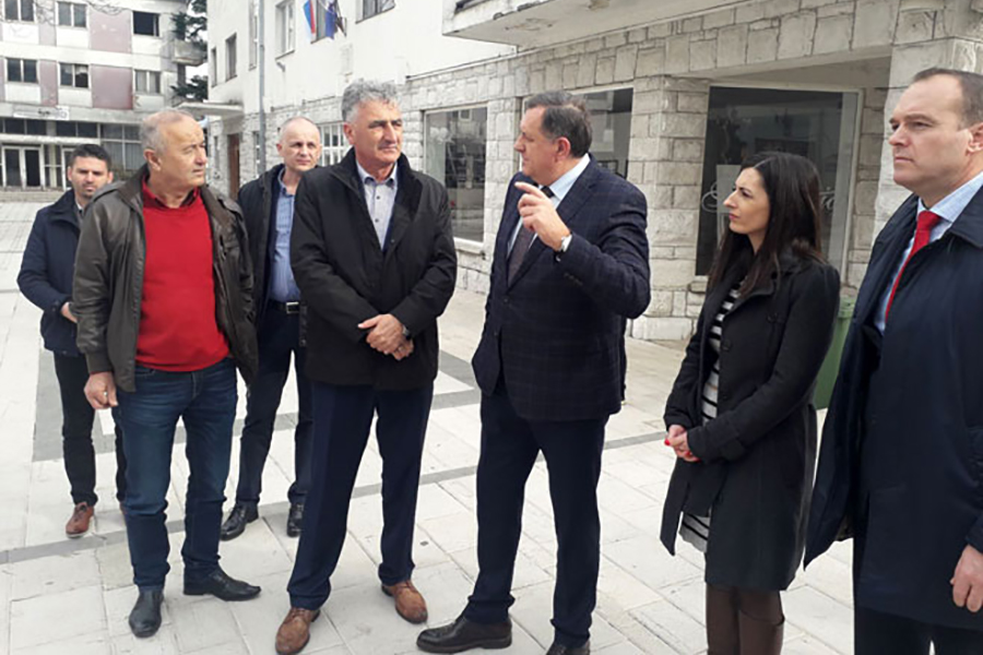 Srpski član Predsjedništva BiH Milorad Dodik stigao je danas u Nevesinje. Na području ove opštine zabilježen je niz zemljotresa koji su pričinili materijalnu štetu.