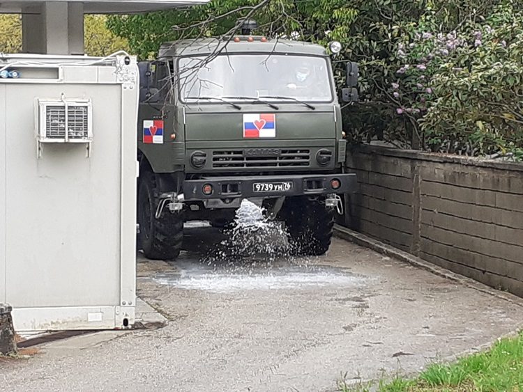 Ruski stručnjaci, koji su došli u okviru pomoći Ruske Federacije u borbi protiv pandemije koronavirusa, stigli su sinoć u Trebinje s ciljem da dezinficiraju zdravstvene ustanove i objekte za smještaj zaraženih ovim virusom.