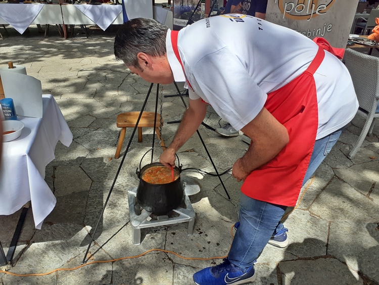 Na trgu se krčkala i čorba od graha poljaka. Specifičan ukus „širio“ se gradskim trgom iz improvizovanog kotlića. Ilija Runjevac iz Slu fud zajednice istočne Hercegovine, majstor kotlića, kazao je da su za spremanje graha poljaka od izuzetne važnosti povrće i začini sa ovih prostrora.