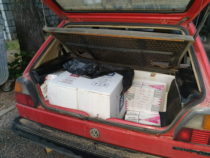 Policijska stanica Nevesinje je juče, 23. jula 2020. godine, oko 19,30 časova na regionalnom putu Nevesinje – Berkovići, u mjestu Trusina, opština Nevesinje, zaustavila i kontrolisala putnički automobil marke „Volkswagen“, tip „Golf II“ u kome je pronađeno 2050 paklica cigareta raličitih vrsta.