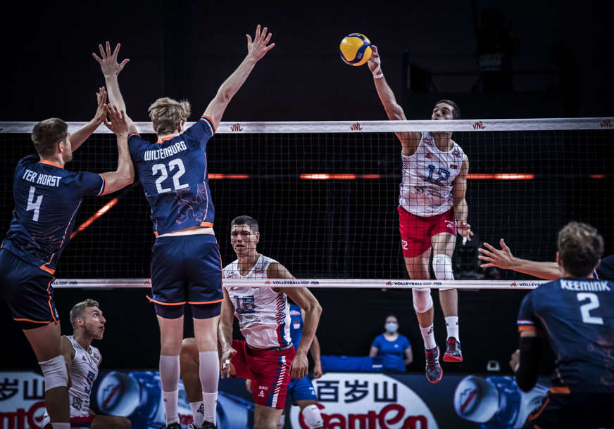 Srbija je danas, u 2. kolu V vikenda savladala Holandiju sa 3:2, po setovima (25:21, 21:25, 25:18, 21:25 i 17:15) poslije 141 minuta igre.