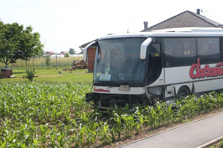 Spahija je ostao hladne glave, izbjegavajući stupove javne rasvjete i “parkirao” u mali kanal u polju kukuruza. U međuvremenu je prošao pravi “slalom”, da smiri autobus i da ne dođe do novog sudara s “banderama” na putu.