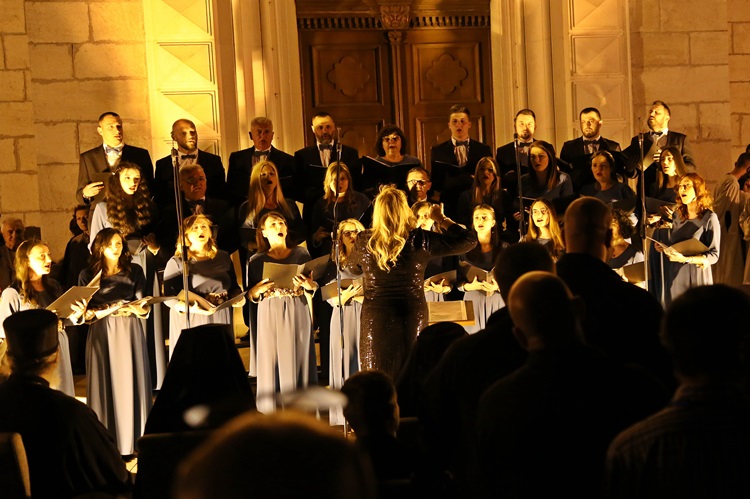 U porti Sabornog hrama večeras je priređen koncert pravoslavne duhovne muzike u izvođenju članova Hora “Sveti Vasilije Ostroški i Tvrdoški”, koji ove godine slavi 130 godina od osnivanja, uz koji su nastupili i Srpsko pravoslavno crkveno pjevačko društvo “Pobratimstvo” iz Foče.