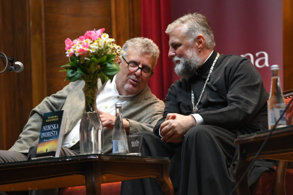 U dupke punoj Velikoj dvorani Kolarčeve zadužbine sinoć je promovisana knjiga „Nebeska dvorišta“ episkopa diseldorfskog i cele Nemačke Grigorija u izdanju “Lagune“.