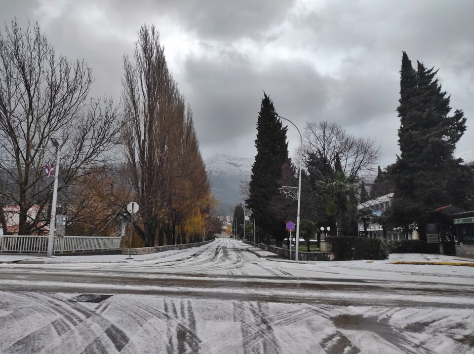 Vrh Leotara i jutros je prekriven snijegom, a jutro u Trebinju je osvanulo sa kišom i gradom. Prema riječima meteorologa, grad je bio veličine šest milimetara.