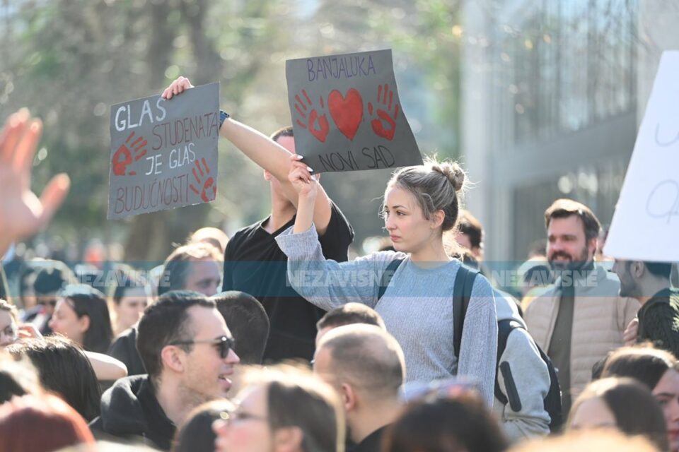 “Profesora ni danas nije bilo mnogo, ali i dalje je to dovoljan broj da budemo ponosni i da imamo dovoljno hrabrosti da i dalje stojimo tu. Mi se okupljamo već dva mjeseca, ali do duše u mnogo manjem broju, ovo je prvi put da se Banjaluka digla u ovolikom broju”, rekla je jedna studentkinja za “Nezavisne novine” dodajući da će oni i dalje iskazivati svoju podršku studentima.