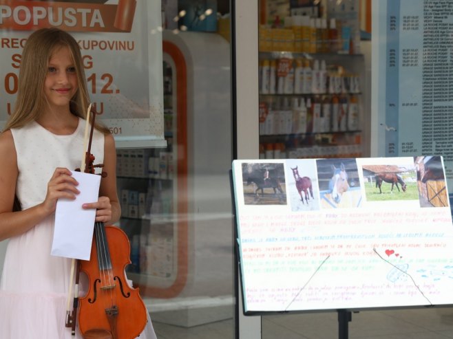 Djevojčica Vanja izašla je juče u Gospodsku ulicu sa svojom violinom i talentom kako bi prikupila novac za novog konja koji će pomagati djeci i buditi u mališanima ljubav ka jahanju.