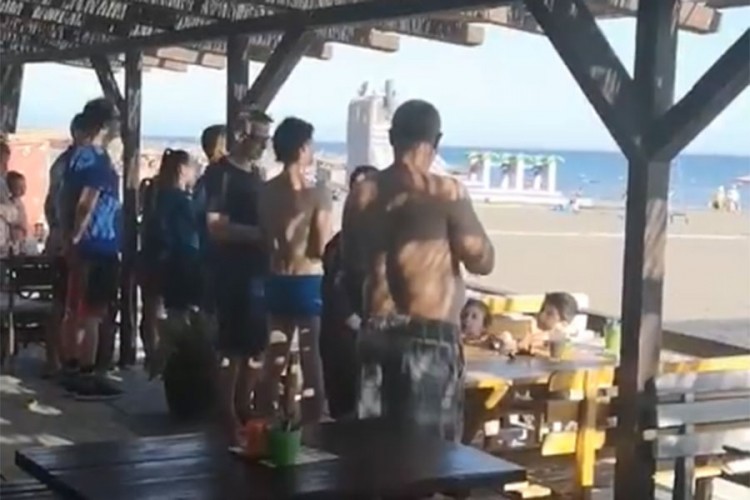 Na video snimku se vidi da su gosti jednog plažnog bara, koji su sjedili za stolovima, svi ustali i stajali u stavu mirno dok je svirala himna bivše zajedničke države.