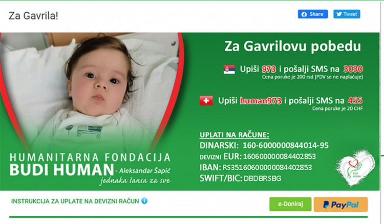 Nažalost, ove djevojčice nisu jedine kojima je potrebna terapija i najskupljim lijekom na svijetu. U toku je bitka za malog Gavrila Đurđevića. Mame koje su imale sreće da njihova djeca humanošću dobiju novu šansu, apeluju na to da i Gavrilo dobije priliku za svoj prvi korak.