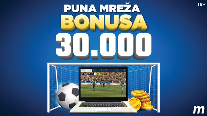 Uskoči u Punu Mrežu Bonusa sa ukupnim nagradnim fondom od vrtoglavih 30.000 KM kazino bonus novca, na Meridian online kazinu sa igrom Virtual Football, sjajnog provajdera Leap!