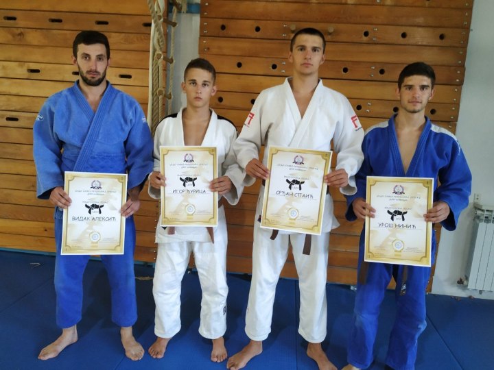 Ispred džudo kluba “Leotar” za majstora džudoa crni pojas prvi dan položili su: Uroš Ninić, Igor Đurica, Vidak Aleksić i Srđan Spaić.
