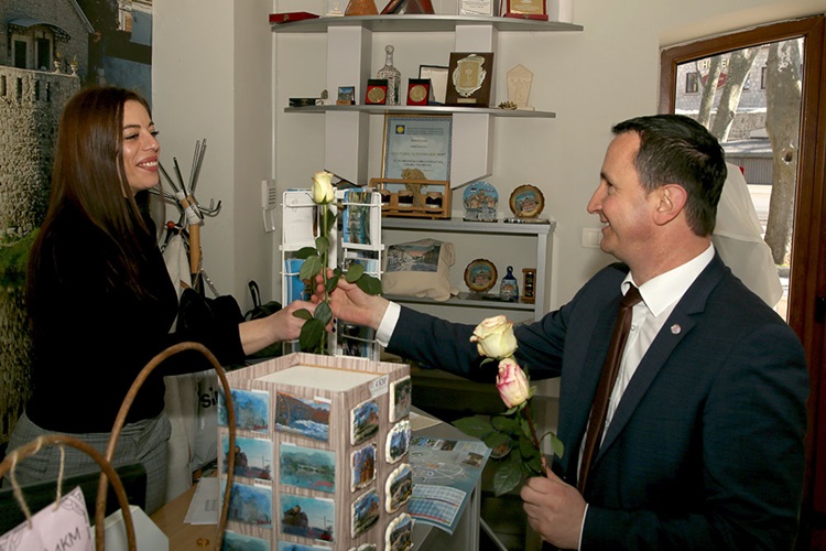 Gradonačelnik Mirko Ćurić i ove godine oduševio je brojne Trebinjke u centru grada kojima je kao mali znak pažnje povodom 8. marta poklonio po ružu.