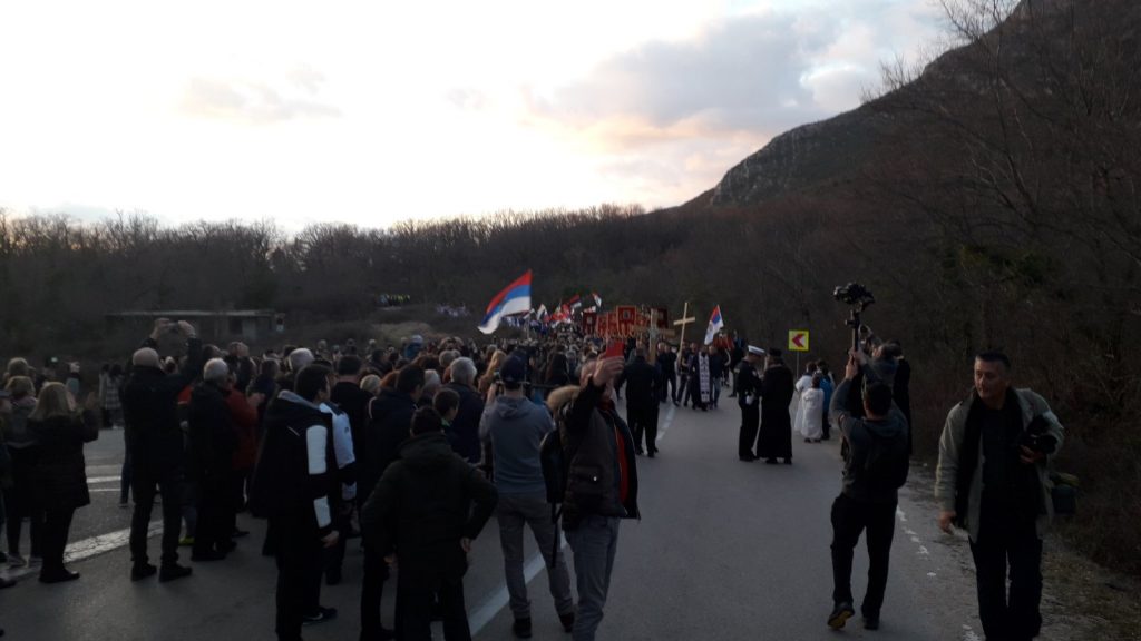 Iz manastira Tvrdoš, litija se uputila ka Trebinju i Sabornom hramu Svetog preobraženja Gospodnjeg, gdje će u 18.00 časova biti služen moleban za spas svetinja u Crnoj Gori.