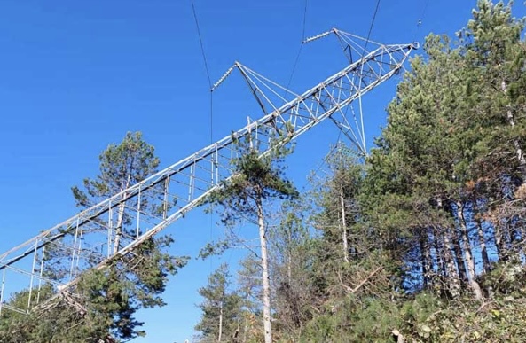 Radnici Elektroprenosa otklanjaju kvar na 110 kilovoltnom dalekovodu koji je ostao jedina raspoloživa veza prema Bileći. To je dalekovod iz pravca Trebinja