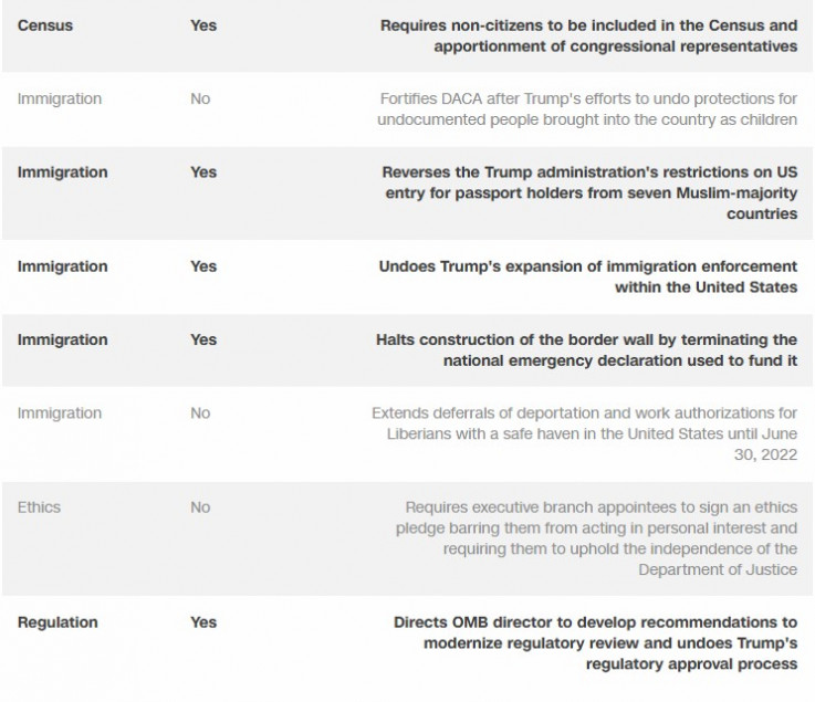 Deseta odluka odnosi se na cenzus s kojim Bajden zahtjeva da se oni koji nemaju državljanstvo budu uključeni u popis i raspodjelu predstavnika Kongresa.
