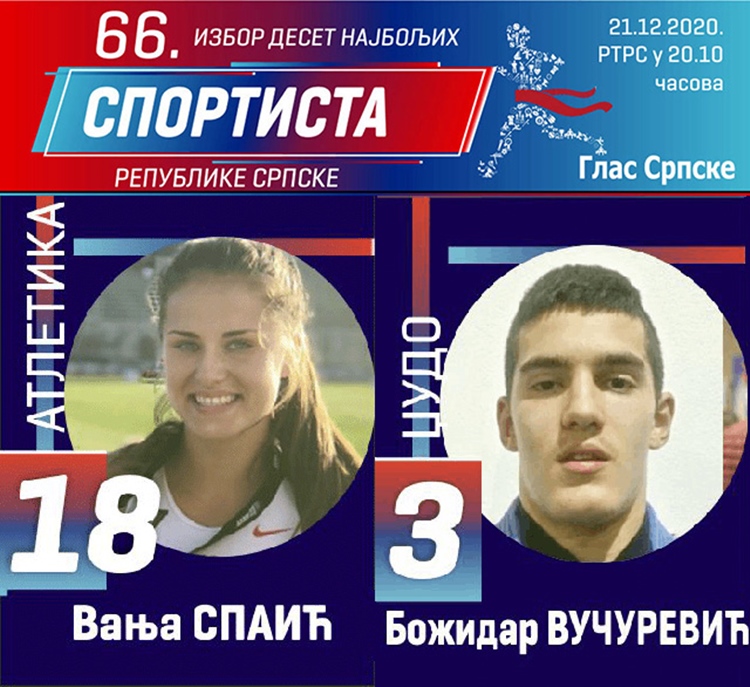 Atletičarka Vanja Spaić i džudista Božidar Vučurević konkurišu za zvanje najboljeg sportiste Srpske za 2020. godinu.