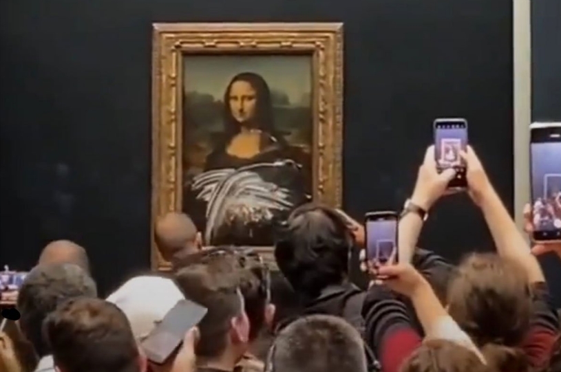 Na video-snimku sa Twittera prikazano je kako mladić baca komad kolača na armirano staklo koje štiti najpoznatije svjetsko umjetničko djelo.