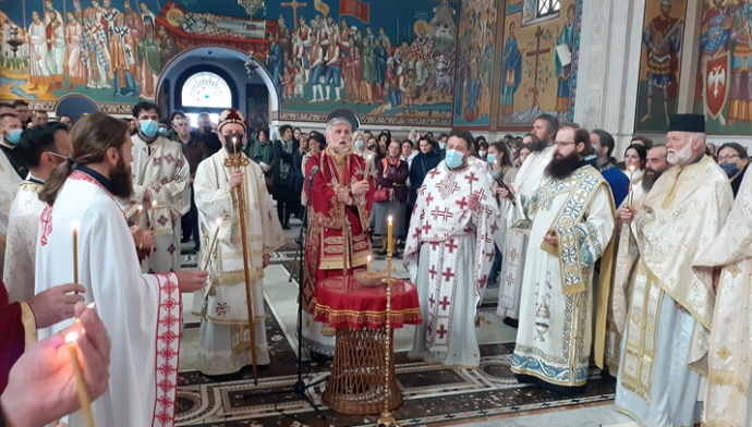 Pomen, kojem je prethodila sveta arhijerejska liturgija, služili su episkopi – zahumsko-hercegovački i primorski Dimitrije i diselfdorski i cijele Njemačke Grigorije, sa sveštenstvom.