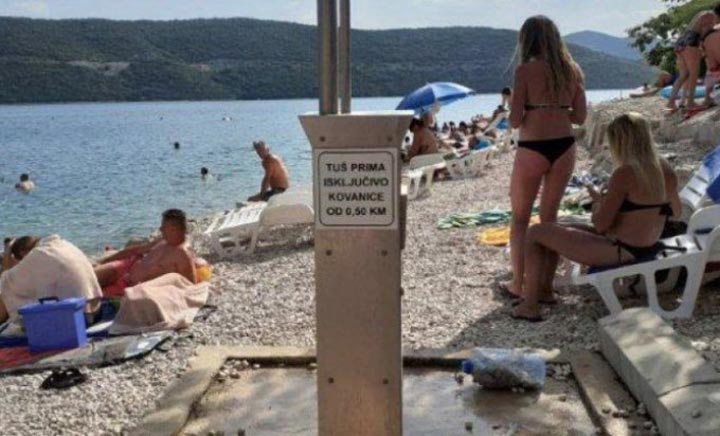Neum je ove godine izbor mnogih bh. građana za ljetovanje. Međutim, da se nastoji naplatiti sve što može, zabilježili smo na jednoj plaži. Naime, ni tuširanje nije džabe te je postavljen natpis „Tuš prima isključivo kovanice od 0,50 KM“.