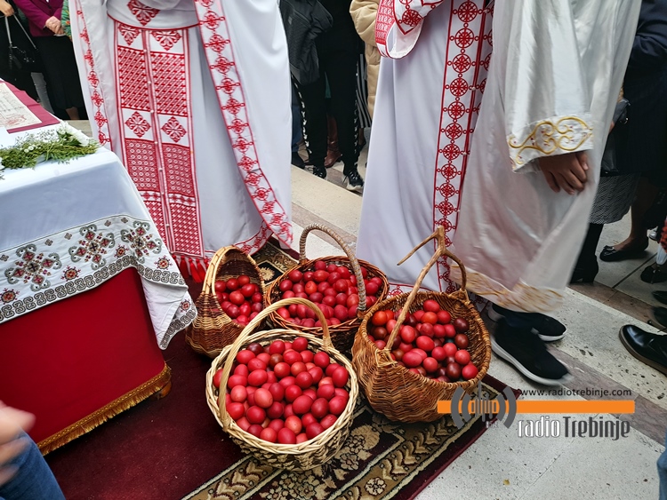 Poslije liturgije i pričešćivanja vjernika koji su se za ovu svetu tajnu pripremali kroz vaskršnji post, u porti Sabornog hrama vjernicima su dijeljena bojena vaskršnja jaja.