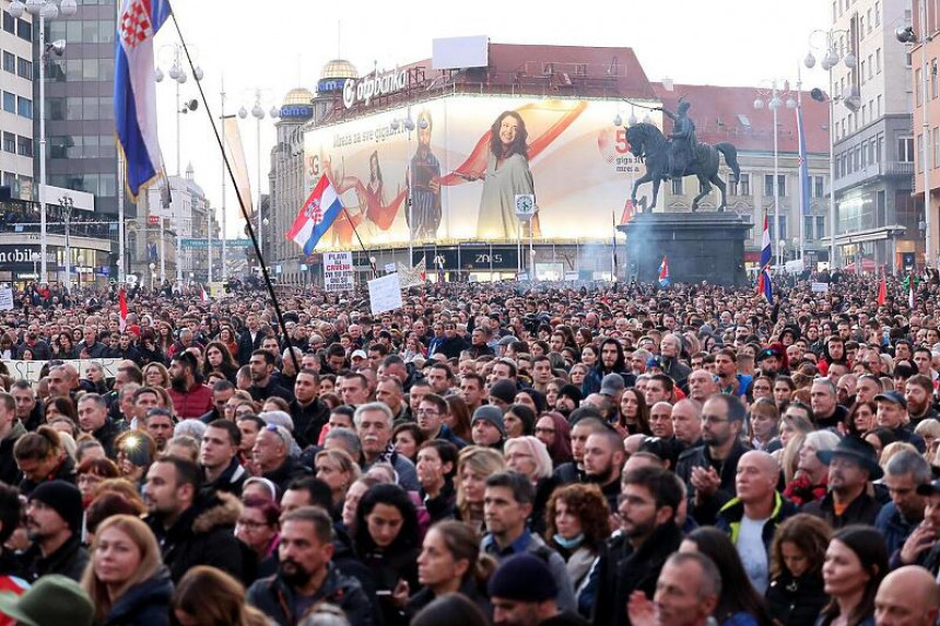 U Zagrebu je danas održan masovni protest protiv covid-potvrda i epidemioloških mjera, a okupilo se oko 15 hiljada građana.