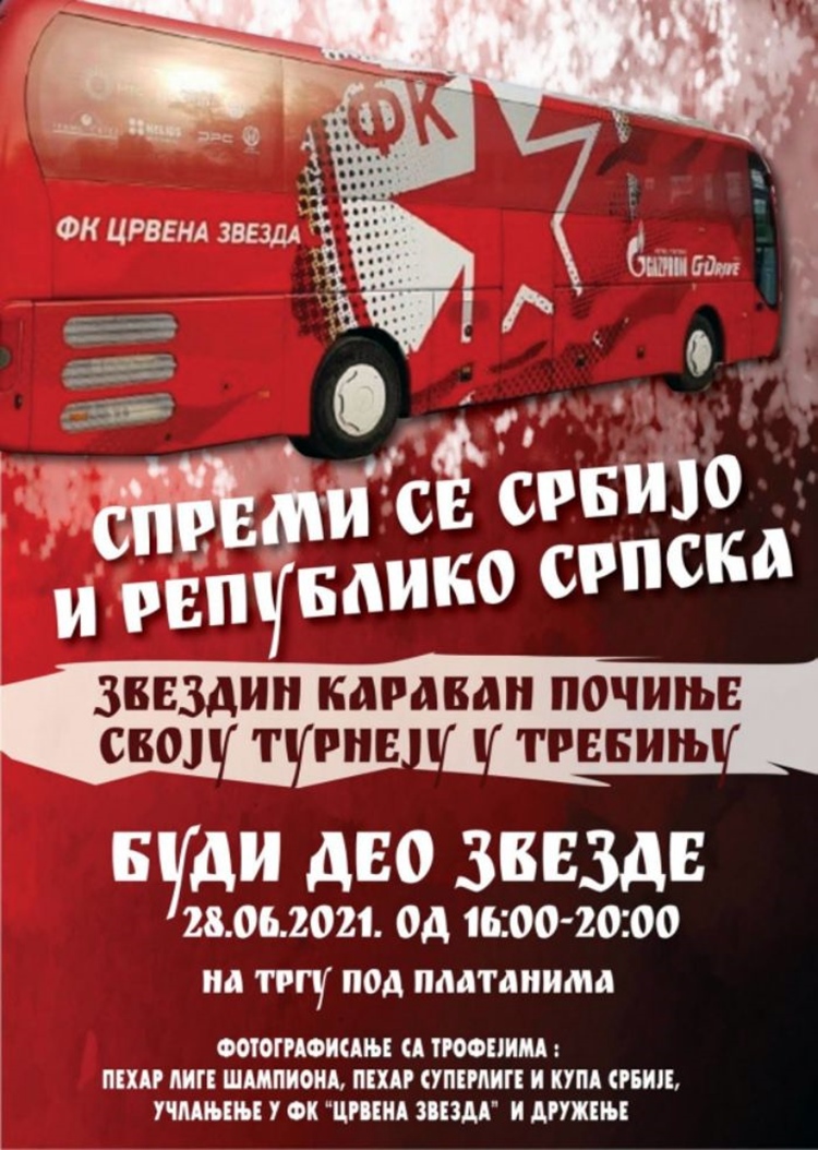 Karavan FK “Crvena zvezda” kroz Republiku Srpsku i Srbiju počeće sutra, na Vidovdan, 28. juna, iz Trebinja, najavljeno je iz ovog kluba.